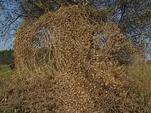 La plante peut déraciner des jeunes plants à cause de ses vrilles ou encore littéralement étouffer une plante plus grande à cause de sa croissance rapide et volubile qui lui permet de recouvrir rapidement des grandes surfaces. Dans son aire d'origine, la plante n'est pas envahissante[8].