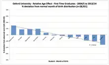 L'effet d'âge relatif (en anglais : relative age effect, RAE), ou effet de la date de naissance, désigne un biais apparaissant dans les échelons supérieurs du sport des jeunes[1] et du milieu universitaire[2] où la participation est plus élevée parmi ceux qui sont nés plus tôt dans la période de sélection pertinente (et réciproquement plus faible pour ceux nés plus tard dans la période de sélection) que ce à quoi on pourrait s'attendre d'après la distribution des naissances. La période de sélection est généralement l'année civile, l'année académique ou la saison sportive[3].