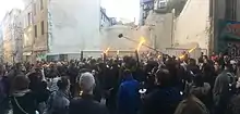 En 2019, le premier anniversaire du drame donne lieu à une série de manifestations à partir du soir du 4 novembre[408],[409], dans un contexte de début de campagne électorale pour les municipales[410]. Une commémoration et huit minutes de silence rue d'Aubagne marque le jour de l'anniversaire[411],[412]; Samia Ghali (PS) est huée pas les manifestants[413] (et ne participera pas à la marche du 9 novembre[321]), pendant qu'à la mairie, Jean-Claude Gaudin (LR) a préféré le huis clos pour remercier les agents municipaux de leur gestion de la crise[411],[414]. La marche de soutien aux victimes et pour un logement digne du samedi 9 novembre[415],[416] rassemble 20 000 personnes selon les organisateurs et 6 700 selon la police[417] derrière une banderole « Ni oublie, ni pardon »[418]. Dix personnes sont arrêtées, un policier blessé et quelques éléments de mobilier urbain dégradés[419]. Une semaine d’hommage aux victimes est organisée par les collectifs d'habitants du quartier. Elle débute avec le baptême de place située à l’intersection des rues d’Aubagne, de l’Arc et Jean-Pierre-Moustier, dite place Homère, qui reçoit le nom de place du 5-novembre[420],[421] officiellement en 2021[422].