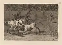 Le Célèbre américain Mariano Ceballos de Francisco de Goya, une des quatre planches consacrées à "El Indiano" dans Les Taureaux de Bordeaux | |