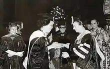Elena Ceaușescu était docteur honoris causa de plusieurs universités et membre de certaines sociétés universitaires aux États-Unis et dans des pays d'Asie, d'Europe et d'Afrique[5].