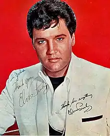 Elvis Presley ([ˈɛlvɪs ˈpɹɛsli][alpha 1]), né le à Tupelo dans le Mississippi et mort le à Memphis dans le Tennessee, est un chanteur et acteur américain. Surnommé « The King of Rock and Roll » (« Le Roi du Rock and Roll ») ou plus simplement « The King » (« Le Roi ») en raison de son immense succès international et pour son rôle dans l'expansion de ce style musical à l'échelle mondiale, il est l'une des icônes culturelles majeures du XXe siècle.