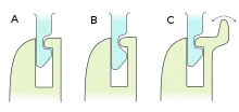 (C) Lorsque le démontage doit rester possible mais qu'il ne doit pas se faire sous un effort dans l'axe d'emboîtage, un dispositif permettant de déformer directement la pièce verte peut être prévu.
