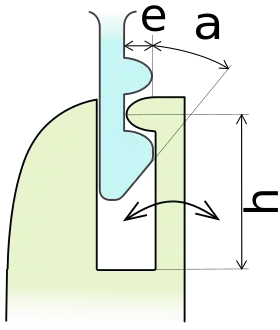Ainsi, l'effort nécessaire va varier en fonction de la longueur h, de l'écartement e et de l'angle a entre la direction du mouvement et celui de la surface de contact entre les deux pièces.
