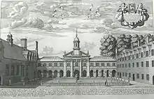 Gravure représentant la chapelle d'Emmanuel College publiée en 1690.