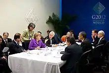 Le 14 mai 2017, Emmanuel Macron est investi président de la République française[240]. Il est le 8e président de la Cinquième République et le 25e président de la République française. Lors de son entrée en fonction, il est, à 39 ans, le plus jeune président français de l'histoire[alpha 9], le plus jeune dirigeant du G20 et le plus jeune chef d'État élu démocratiquement, exception faite du micro-État de Saint-Marin[alpha 10].