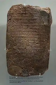 Contraint d'interrompre ses fouilles à cause de la Seconde Guerre mondiale, Blegen confia ensuite les tablettes à son disciple Emmett Bennett, qui était devenu l'un des meilleurs spécialistes de la lecture des textes minoens[1],[4] – à une époque où le Linéaire B n'était pas encore déchiffré.