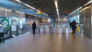 La station ne possède qu'une seule entrée, accessible depuis un grand bâtiment, le long de l'avenue. Elle est équipée de guichets automatiques permettant l'achat des titres de transports.