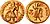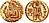 Reliquaire[N 1]. Dévot[N 2], de face, et déités nimbées, de profil, en adoration. Or, grenats. Ier ou IIe siècle . British Museum