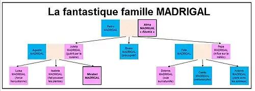 - Isabela Madrigal, fille aînée de Julieta et Agustín. Elle a le pouvoir de faire pousser de la végétation par magie mais peine à garder son image de jeune fille parfaite ;