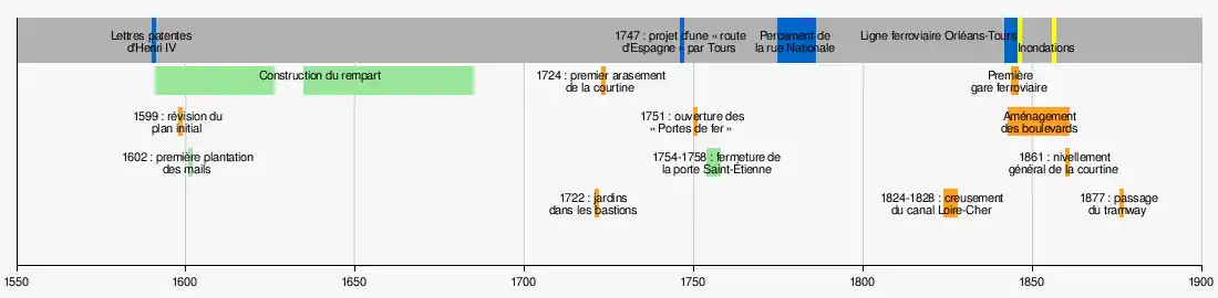 Chronologie du rempart bastionné de Tours, de sa construction à son abandon.