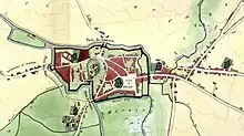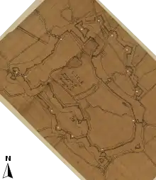 À la même époque, entre 1572 et 1599, des demi-lunes et ouvrages à cornes sont ajoutés à l'enceinte[note 9],[13],[10] :