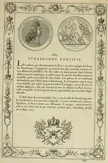 Après la bataille d'Oberhausbergen du , opposant les Strasbourgeois à l'évêque Walter de Géroldseck, le Conseil de la ville est débarrassé de la tutelle épiscopale. Strasbourg restera une ville libre du Saint-Empire romain germanique jusqu'à sa capitulation du face aux armées françaises de Louis XIV[35]