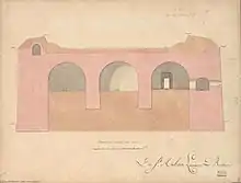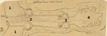 a. casemates du flanc droit (les canonnières dans le mur sont figurées en pointillés)