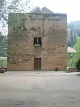 L'Alhambra est fortifiée de murailles d'enceinte comportant de nombreuses tours pour surveiller les alentours. Tous les palais du monument, à l'exception du Généralife, figurent dans cette enceinte.