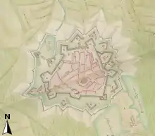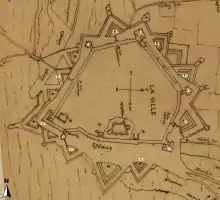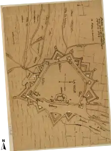 - Le plan Deventer réalisé dans les années 1550 et celui réalisé lors de la tournée d'inspection des fortifications des Pays-Bas par Giovanni Maria Olgiati et Sébastian van Noyen en 1553 représentent ces ouvrages.