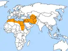 Cette espèce vit dans le Sud-Ouest de l'Asie et en Afrique.