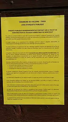 Il s'y rajoute un registre d'enquête destiné à recevoir les observations du public[63]. Ces documents sont ouverts au public dans tous les lieux (mairie(s)) où l'enquête est officiellement ouverte, au format papier et facultativement de manière dématérialisée (sur site internet)[63],[64].