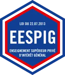 Par la suite, la qualification d'établissement d'enseignement supérieur privé d'intérêt général (EESPIG) a été créée par la loi relative à l'enseignement supérieur et à la recherche du (dite loi Fioraso)[27], qui a modifié le Code de l'éducation en y insérant les articles L732-1 à L732-3. Cette modification s'est faite via le vote d'un amendement sénatorial, soutenu par la FESIC[28].