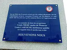 - Dans la nuit du 10 au 11 juin 1944, Louis Larnicol de Plobannalec, instituteur fut massacré par les Allemands : il aurait voulu se rebeller contre ses geôliers. Son corps ne fut jamais retrouvé. Site web de la commune de Plomeur