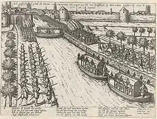 - L'introduction du calendrier grégorien en 1582 a causé beaucoup de confusion dans l'historiographie ; par conséquent, les 22 et 24 septembre 1577 sont donnés comme date de l'événement. Quelques-uns notent le 23 septembre 1577, comme Frans Hogenberg (voir ici).