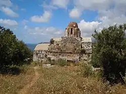 Il ne reste plus que deux bâtiments, l'église Panagia (Notre-Dame) et une maison tour en cours de restauration.