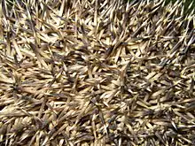 L'épandage sur les cultures de pesticides, notamment les néonicotinoïdes neurotoxiques, nuit gravement au hérisson car ceux-ci font disparaître sa nourriture (limaces, insectes, serpents, lézards, escargot) ou l'empoisonnent soit directement soit lorsqu'il dévore ses proies[16]. Ainsi les granulés anti-limaces de couleur bleue au métaldéhyde sont particulièrement dangereux pour les hérissons (mais aussi pour les animaux domestiques et les enfants). Le hérisson croque souvent une limace empoisonnée avec ce produit et s'empoisonne à son tour.