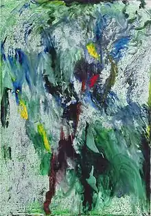 « La peinture se fait avec des couleurs/ les couleurs sont en elles-mêmes/ belles/ C'est de là qu'il faut partir/ utiliser des couleurs/ avec/ la joie/ suivre le rythme/ de la vie// la vie est perdue/ dans le temps/ le moment de la couleur/ la traverse/ et la remplit"[10] ».