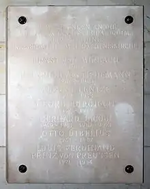 - Die Kaiser Wilhelm-Gedächtnis-Kirche, dem engeren Ausschuss des Evangelischen Kirchlichen Hülfvereins, dem Vorstand des Kirchenbauvereins, der Gemeinde, den Freunden und Förderern des Kirchenbaues zum 22. März 1897. E. S. Mittler & Sohn. Berlin 1897. Digitalisierung: Zentral- und Landesbibliothek Berlin, 2021. URN urn:nbn:de:kobv:109-1-15443192