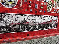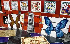 Il est orné sur toute sa longueur de plus de 2 000 carreaux de faïence venant de 120 pays différents[13].