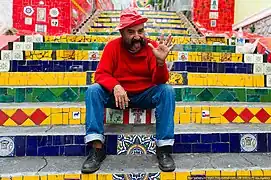 Attraction touristique de la ville, l'escalier est une œuvre de l'artiste d'origine chilienne Jorge Selarón (1947-2013)[6], résident du quartier et arrivé au Brésil en 1983[7], qui a décoré plusieurs lieux publics de Santa Teresa et de Lapa[réf. nécessaire].