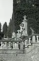 Le côté est de la place Salinis, fermé par des balustrades de pierre, forme un premier balcon offrant une vue panoramique sur la basse ville. Les mêmes balustrades protègent le premier palier de l'escalier au droit de la tour d'Armagnac au nord et du collège Salinis au sud. Au centre du mur de soutènement des deux terrasses et du jardin central est creusée, sur toute la hauteur, une niche en cul-de-four, encadrée de pilastres et surmontée d'un arc en plein-cintre, abritant une fontaine et un bassin[1].