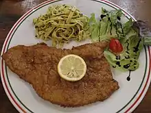 L'escalope à la milanaise ou escalope milanaise ou côtelette à la milanaise (cotoletta alla milanese, en italien, co(s)toleta a la milanesa en langue lombarde, du français « côtelette[1] ») est une spécialité culinaire des cuisine milanaise, cuisine lombarde et cuisine italienne, à base de côtelette[2] ou d'escalope panée de viande de veau (variété de cotoletta traditionnellement prise dans le faux-filet[3]). Elle aurait été introduite à Milan par les Français lors des guerres napoléonniennes[4] et est devenu un des emblèmes culinaires de la ville, avec les risotto à la milanaise, panettone et polenta[5]. Elle est traditionnellement cuite au beurre, et généralement servie avec des légumes ou salade, avec éventuellement du jus de citron. En Italie, ce mets ne se sert pas avec des pâtes.