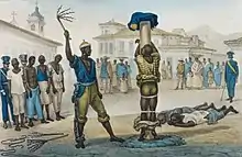 Au Brésil, l'esclavage des noirs a commencé dans la première moitié du XVIe siècle, avec la production de sucre. Les trafiquants portugais amenaient les captifs de leurs colonies d'Afrique, puis les vendaient comme des marchandises pour être utilisés comme esclaves dans les exploitations sucrières du Nord-Est. Les plus robustes arrivaient à valoir le double de ceux qui étaient plus faibles ou plus âgés. De la même façon les Noirs venus d'Angola et du Mozambique, les Bantous, avaient plus de valeur pour le travail de la terre, et ceux qui venaient du comptoir de « São Jorge de Mina », dans l'actuel Ghana, étaient plus appréciés dans l'exploitation des mines d'or du Minas Gerais. Les Noirs « miniers », très communs dans la Bahia, travaillaient déjà dans l'exploitation de l'or en Afrique occidentale.