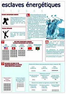 En France, le terme esclave énergétique est employé par Jean-Marc Jancovici et a été étudié par l'historien Jean-François Mouhot. Les résultats de Jean-Marc Jancovici sont résumés dans le tableau ci-dessous[1].
