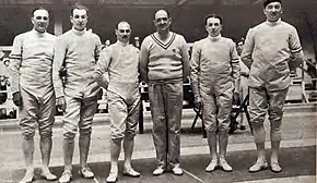 L'équipe de France championne olympique à l'épée en 1932 (G. à D. Buchard, Schmetz, Piot, Cattiau, Joudant et Tainturier).