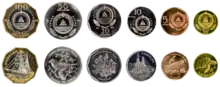 La plus petite pièce en vigueur est de 1 escudo, la plus grande vaut 100 escudos. Il existe deux modèles en circulation de la pièce de 100 escudos : la pièce décaédrique et la pièce ronde, surnommée pape.
