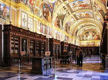 Elle répond au projet humaniste de Philippe II, prince lettré formé par les plus grands esprits de l'Espagne de son temps, qui lisait parfaitement le latin, savait l'italien et le français (quoiqu'il répugnât à le parler à cause de son fort accent). On y retrouve sa passion pour les beaux livres, les manuscrits anciens, l'intérêt pour les sciences et la philologie. Il s'agissait aussi d'abriter les livres pieux et savants du monastère et du collège. Pour cette raison on trouve des livres interdits ou rares ailleurs : il ne faut pas perdre de vue que l'enseignement à l'Escurial était d'une rare liberté, n'hésitant pas à braver les critiques de l'Église à propos des leçons d'André Vésale ou d'Arias Montano. Le roi fit acheter de nombreux ouvrages en Espagne et en Europe, acquérant notamment les bibliothèques des savants Gonzalo Perez et Juan Paez de Castro, ou celle de son cousin, Ferdinand d'Aragon, duc de Calabre. La question de la conservation des ouvrages fut sérieusement étudiée : contrairement aux autres bibliothèques, les livres, reliées en maroquin, dorés et marqués sur les trois tranches, furent placés sur les rayonnages avec le dos vers le mur, afin d'offrir à l'air la partie du papier protégée par la dorure.