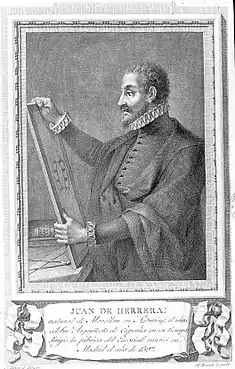 Les statues de David et Salomon flanquent l'entrée de l'église en montrant un parallélisme entre le guerrier Charles Quint et le prudent Philippe II. De la même manière, la fresque de Salomon qui se trouve au centre de la bibliothèque, montrant son image d'une plus grande sagesse : l'épisode célèbre avec la reine de Saba. La construction a commencé, avec la pose de la première pierre le . Sous la responsabilité de l'architecte Jean de Bautista de Tolède, qui n'a pas pu la finir, mourant en 1567, passant la direction à son disciple, Juan de Herrera, qui l'a mené à terme en 1584, avec une telle réussite que son œuvre a donné naissance, en architecture, à l'école de Herrera.