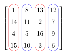 - rg(A) = nombre maximum d'éléments linéairement indépendants parmi les colonnes et les lignes de A[3].