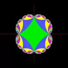 Avec la définition ci-dessus, si il existe une application naturelle de l'espace de Teichmüller à l'espace de -solutions équivariantes de l'équation différentielle de Beltrami.[9] Celles-ci donnent lieu, via la dérivée schwarzienne, à des différentielles quadratiques (en) sur .[10] L'espace de ceux-ci est un espace complexe de dimension complexe , et l'image de l'espace de Teichmüller est un ensemble ouvert.[11] Cette application s'appelle le plongement de Bers.