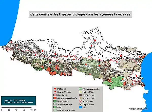 Il existe 116 sites Natura 2000 sur l'ensemble des 6 départements français des Pyrénées[24].