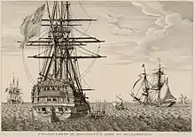 Après avoir abdiqué le , Napoléon rejoint la côte atlantique où le gouvernement français dirigé par Fouché a mis à sa disposition deux frégates pour le conduire en Amérique mais le blocus de l'escadre anglaise organisé dans la région de la Rochelle et de Rochefort l'en empêche[1]. Il se livre aux Anglais le devant l'île d'Aix, et est mené dans la baie de Torbay puis de Plymouth, sur la côte sud-ouest de l'Angleterre à bord du HMS Bellerophon, pensant que le gouvernement britannique va l'autoriser à s'installer et vivre bourgeoisement dans la campagne anglaise[2]. Après avoir appris sa déportation sur l'île de Sainte-Hélène le 31 juillet, Napoléon est transféré le sur le Northumberland, qui l'y conduit au terme d’une traversée de deux mois et une semaine[note 2],[3].