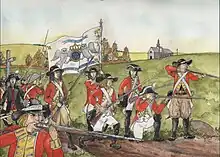 Avides de retourner combattre sur le sol français, les émigrés acceptèrent avec enthousiasme le plan de Quiberon. Cependant les forces émigrées étant à ce moment très faibles, 2 848 soldats[12] républicains prisonniers des Britanniques furent recrutés et incorporés aux divisions royalistes dont les forces s'élevèrent ensuite à 5 437 hommes répartis en deux divisions. La première division commandée par le maréchal de camp d'Hervilly et forte 3 600 hommes devait accoster la première ; la deuxième division, composée de près de 2 000 sous les ordres du maréchal de camp de Sombreuil devait suivre une semaine plus tard suivie à son tour par le comte d'Artois et 10 000 soldats britanniques qui devaient débarquer en Ille-et-Vilaine en vue de prendre Saint-Malo. En attendant l'arrivée du frère du roi, le commandement de l'expédition était échu à Joseph de Puisaye.