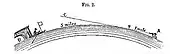 (Si la terre est un globe dont la circonférence est de 25 000 milles terrestres anglais, la surface de toutes les eaux stagnantes doit présenter un certain degré de convexité - chaque partie doit être un arc de cercle. A partir du sommet d'un tel arc, il y aura une courbure ou une déclinaison de 8 pouces dans le premier mille terrestre. Dans le deuxième mille, la chute sera de 32 pouces ; dans le troisième mille, de 72 pouces, ou 6 pieds, comme le montre le diagramme suivant :)