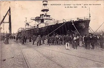 Le statut de premier plan au niveau maritime de Bordeaux s’est confirmé durant l’exposition : le cuirassé Vérité, qui a entièrement été construit par les chantiers navals de Bordeaux a été lancé. Gaston Thomson, ministre de la Marine, a présidé le 28 mai 1907 cette solennité, à laquelle 100 000 personnes assistaient. Le Vérité a eu une brillante carrière avant d’être désarmé en 1920.