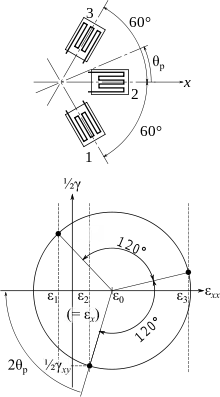 Sur un ouvrage d'art, un bâtiment ou dans des pièces mécaniques de forme élaborée, on ne peut pas préjuger, en général, de la direction où les déformations (extensions, raccourcissements, distorsions) vont être les plus intenses. Il faut donc mettre en place un dispositif de mesure donnant les déformations dans les deux directions d'espace du parement à étudier. On dispose pour cela des méthodes suivantes ; parmi les méthodes par contact :