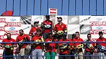 Le podium du championnat 2013, de gauche à droite Bayer Martin, Ronnefalk David et Renaud Savoya .