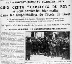 Un rapport de police de mars 1933 indique que l'Action française peut compter sur cinq cents à six cents jeunes pour contrôler le Quartier Latin[23].