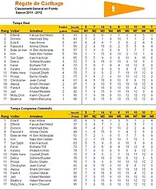- Régate des îles, circuit de 24 heures qui fait le tour de l'île Plane (à la pointe du Cap Farina) puis se dirige vers l'île de Zembra, où les voiliers passent la nuit, avant de revenir à Sidi Bou Saïd (non couru depuis de nombreuses années).
